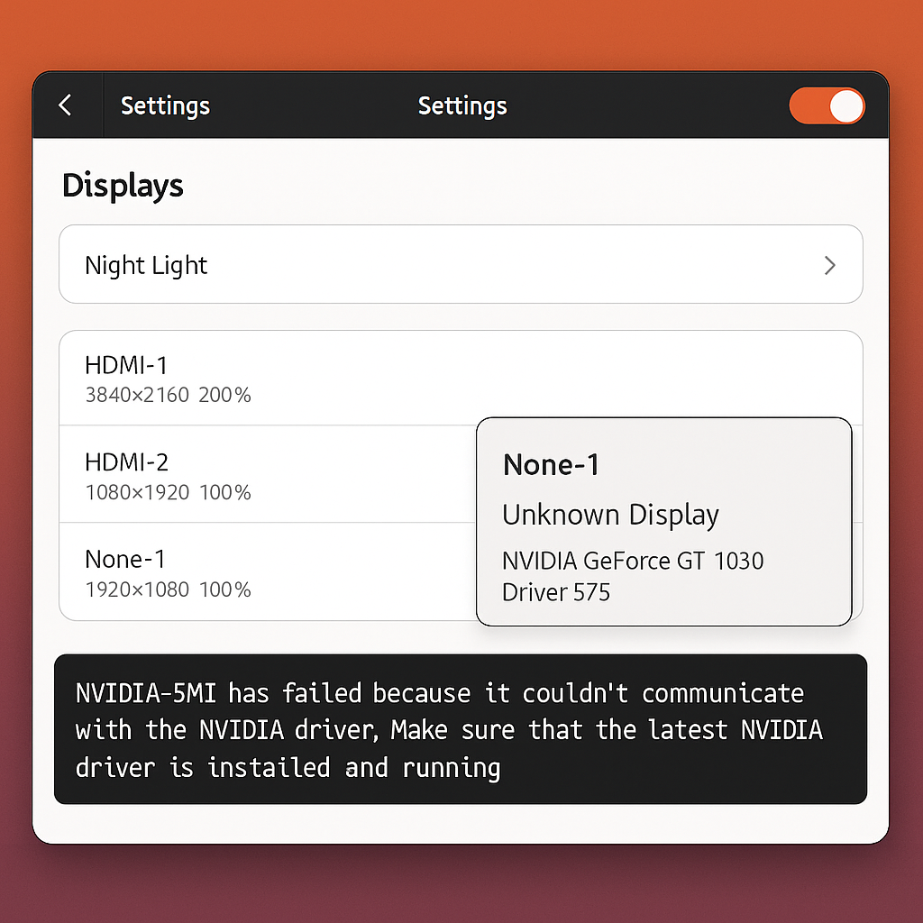 "Ubuntu 24.04에서 GeForce GT 1030을 사용하는데, 드라이버 설치 후에도